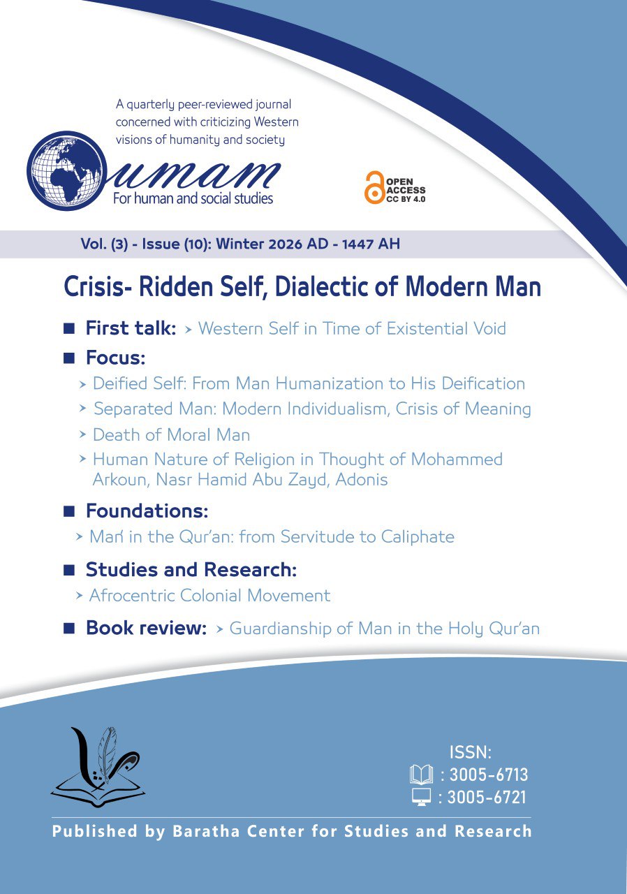 Nasr Hamid Abu Zayd, and Adonis, as an extension of the secular perspective that prioritizes humanism and the centrality of humanity over the centrality of Allah, Almighty. The research demonstrates that these theses share the belief that revelation and religion are historical human constructs, subject to relative understanding and changing interpretations, rather than divine and immutable givens. It outlines the epistemological foundations of secularism, including humanism, secularism, and instrumental rationality, and examines their impact on modern Arab thought. It then explores in detail Arkoun’s thesis on the humanization of revelation, Abu Zayd’s historicism of the Quranic text and the humanization of its meanings, and Adonis’s interpretation of the Quran as a linguistic and literary text stripped of sacredness.